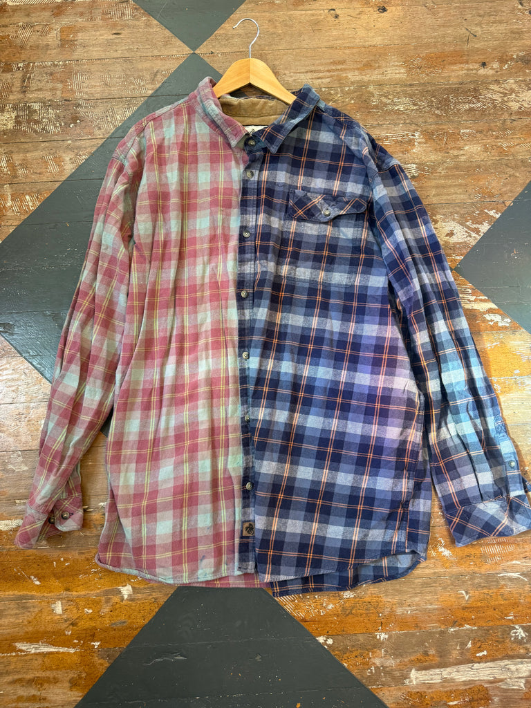Soft, broken-in, and easy to layer, this upcycled flannel shirt is designed for everyday wear. Style it buttoned up, worn open over a tee, or layered for cooler seasons. The lived-in feel and custom bleaching make this piece both comfortable and intentionally unique.