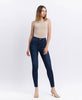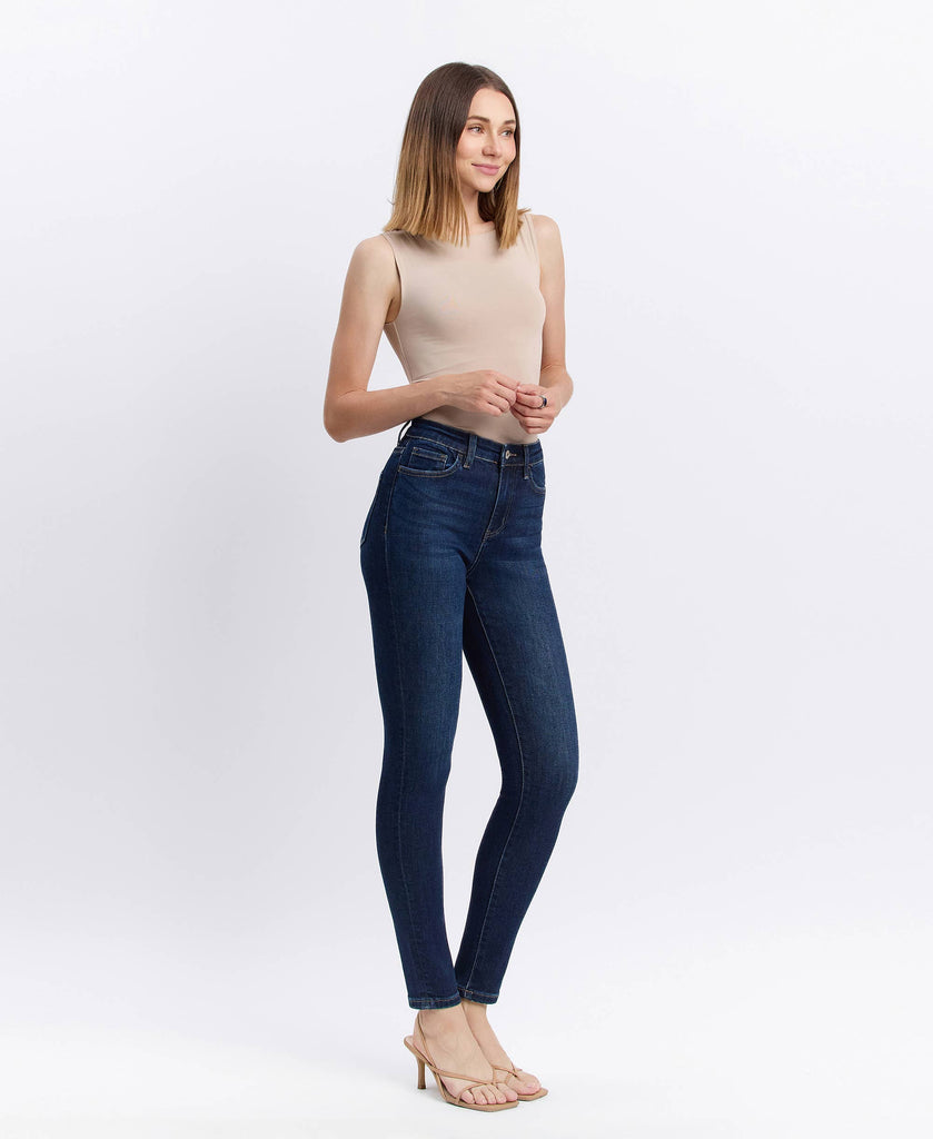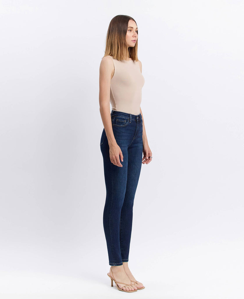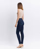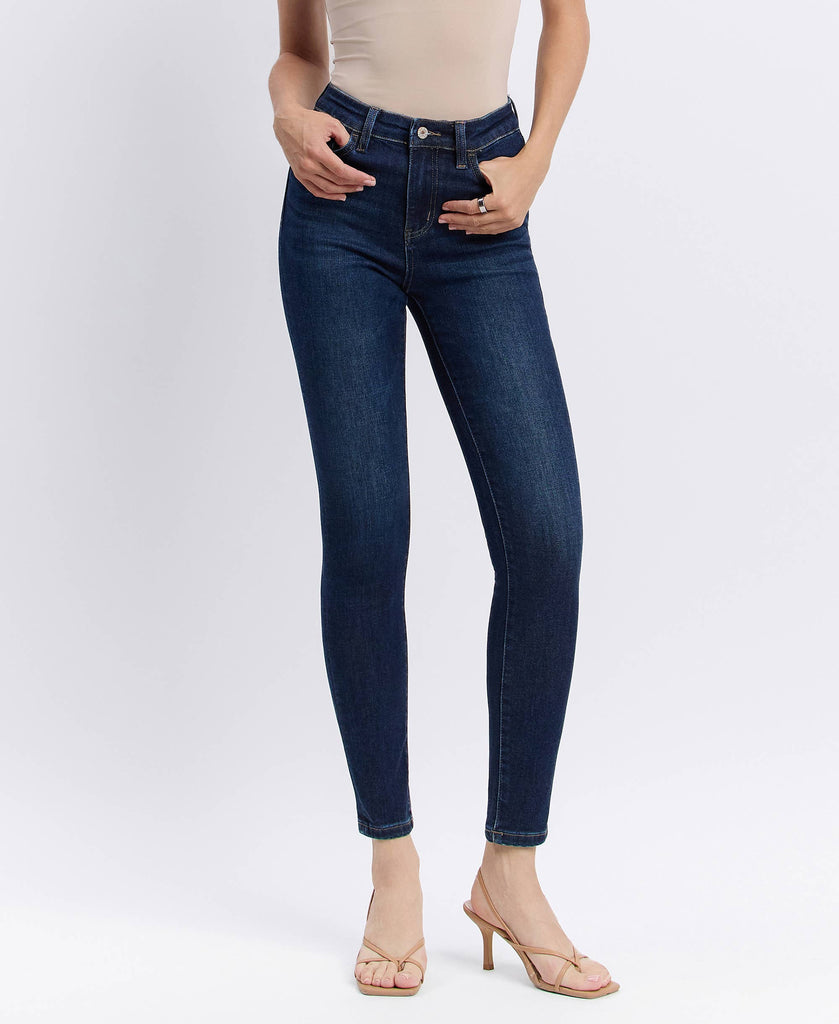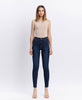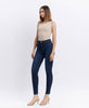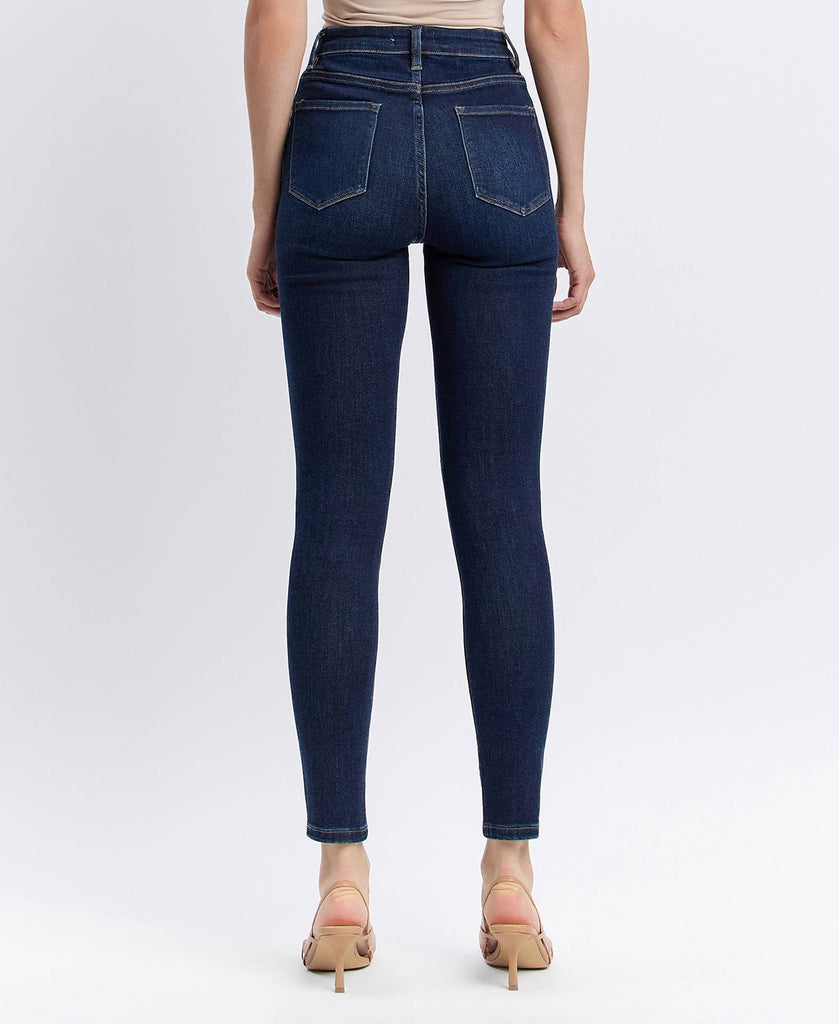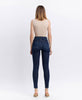 High Rise Ankle Skinny Jeans in a Dark Wash.