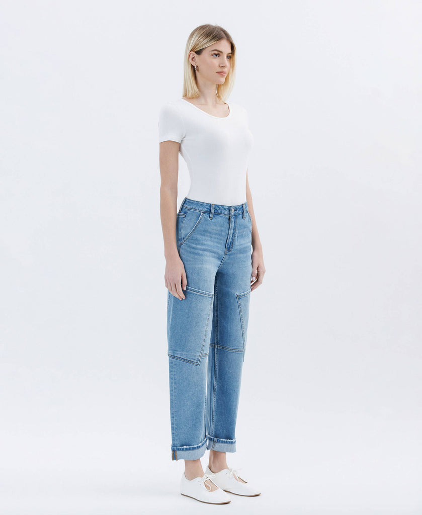 HIGH RISE UTILITY BARREL LEG JEANS - AUGUSTINE