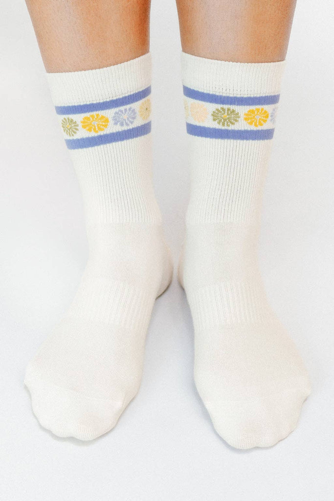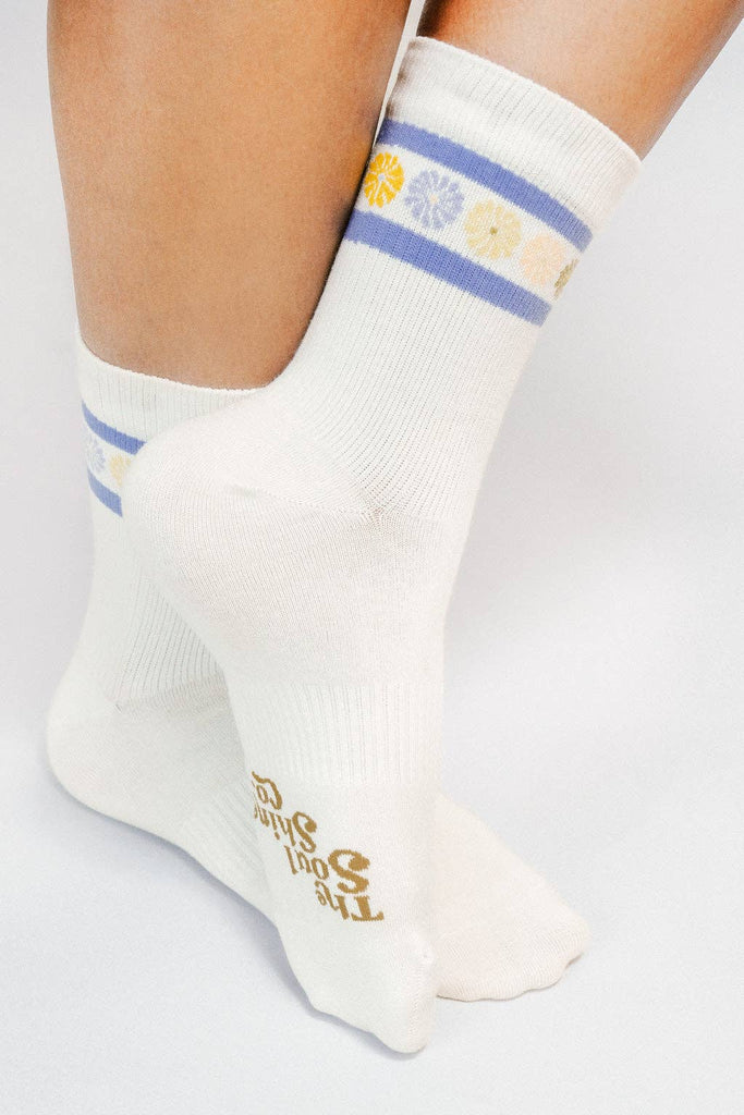 From our latest artsist collection featuring The Soulshine Co. Natalia Skeba is an Orlando based digital designer, painter, and mixed medium artist. Like most of Natilia's work the collection is inspired by small observations of the things that surround her - color, scent, texture, and light. It is within the noticing and observing that creativity ripples into her work and everyday life. The Flower Crown ankle sock is lightweight with a reinforced heel and toe designed to hug your feet. The designs incorporates Natalia's inspriation from nature with a pop of color. Size + OSFA, W 7-10