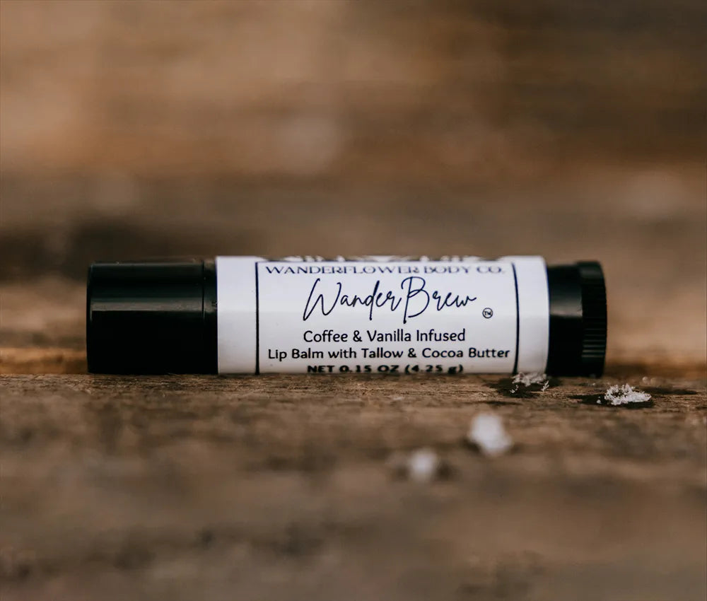 WanderBrew Lips: Organic coffee and vanilla-infused tallow lip balm with cocoa butter,