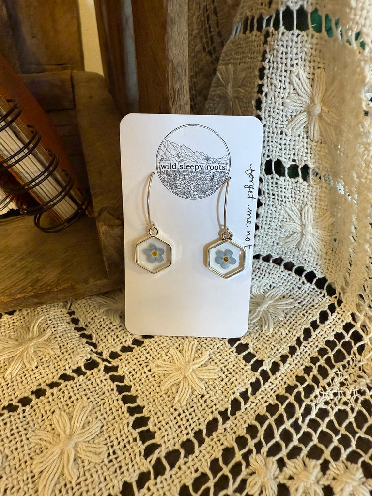 PRESSED LONG FORGET ME NOT EARRINGS