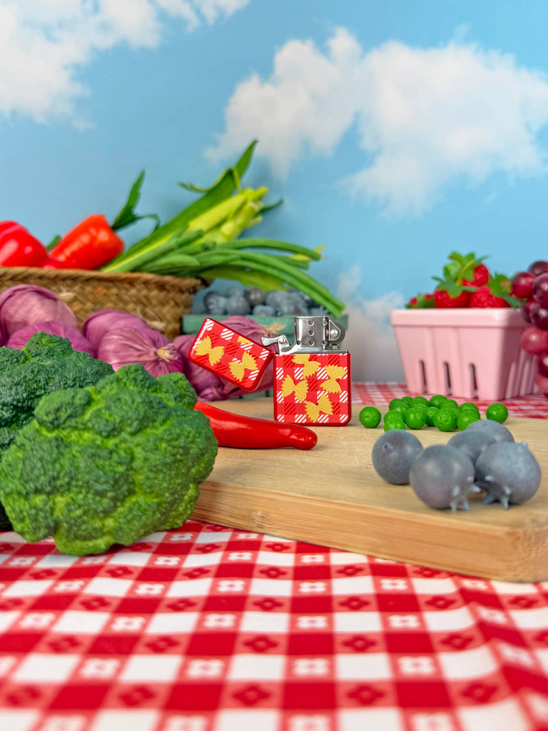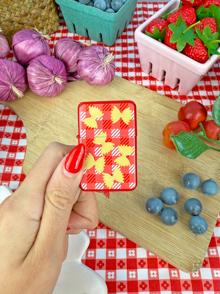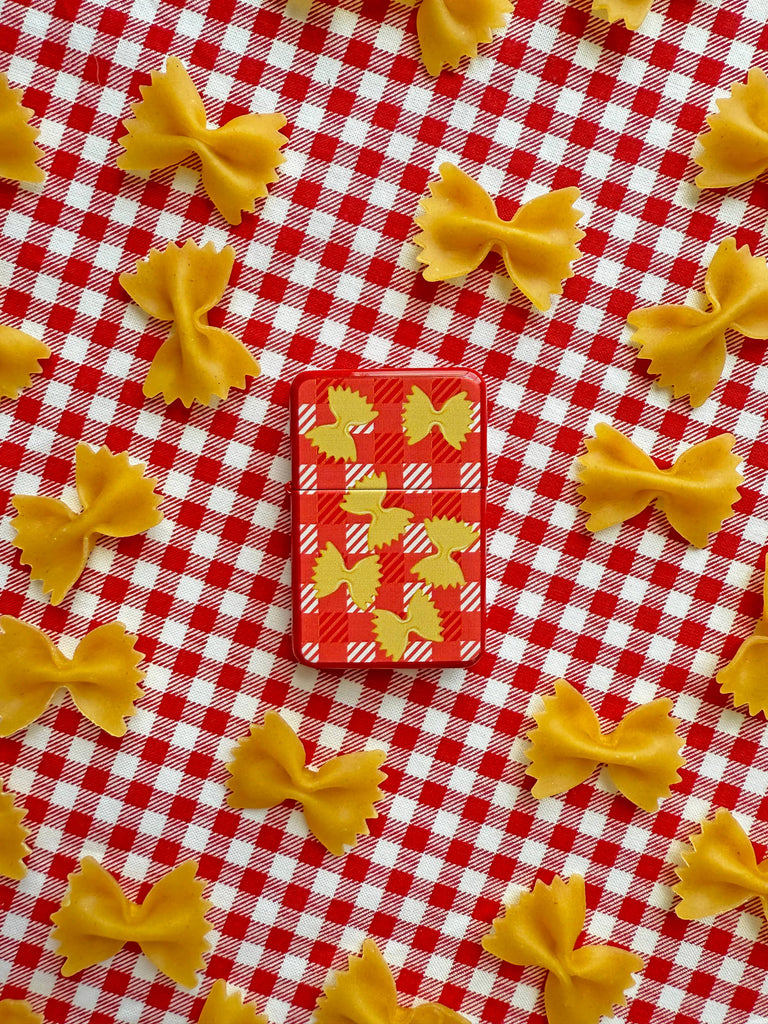 Can you tell we were hungry when we designed this lighter?? This red gingham lighter features an all over farfalle noodle print! The kitschy lighter of our dreams. Perfect for lighting cigarettes, candles, or whatever else you need a fire for! These lighters are REFILLABLE!