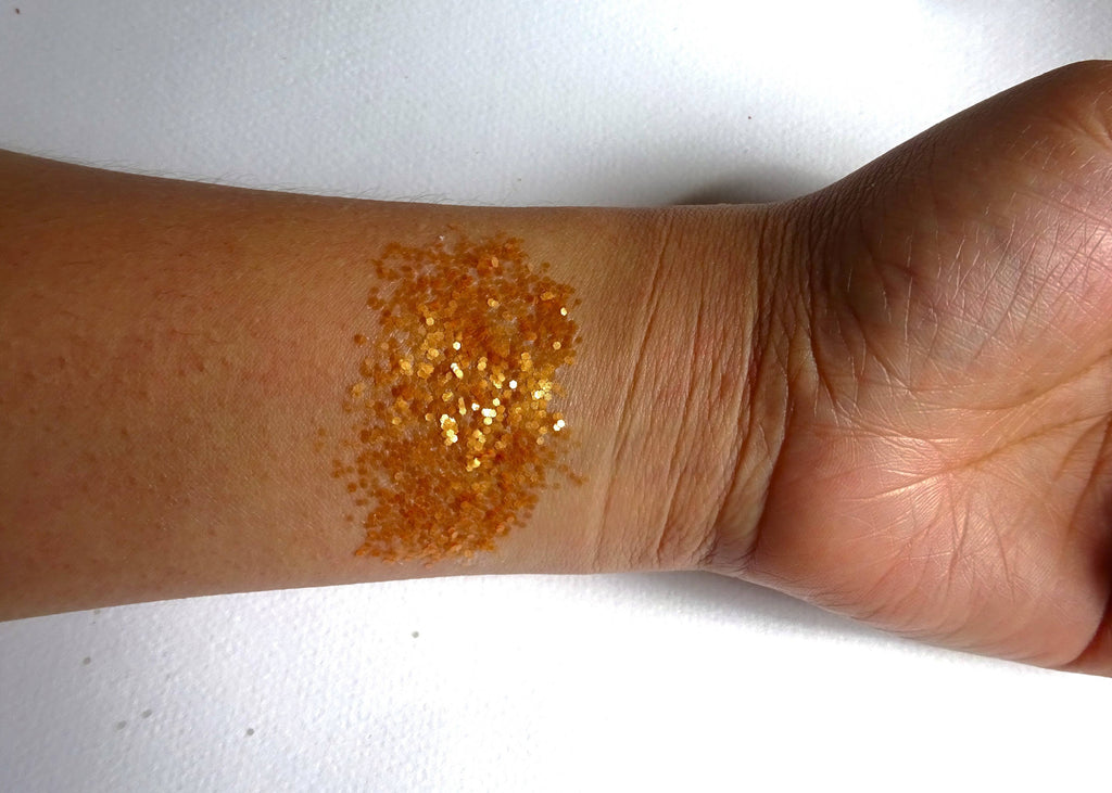 On the skin : mix the glitters with a body oil or lotion and apply on the skin, or apply shea butter first and gently tap the glitters onto the skin using a brush.
