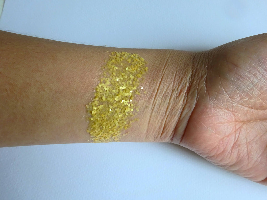 On the skin : mix the glitters with a body oil or lotion and apply on the skin, or apply shea butter first and gently tap the glitters onto the skin using a brush.